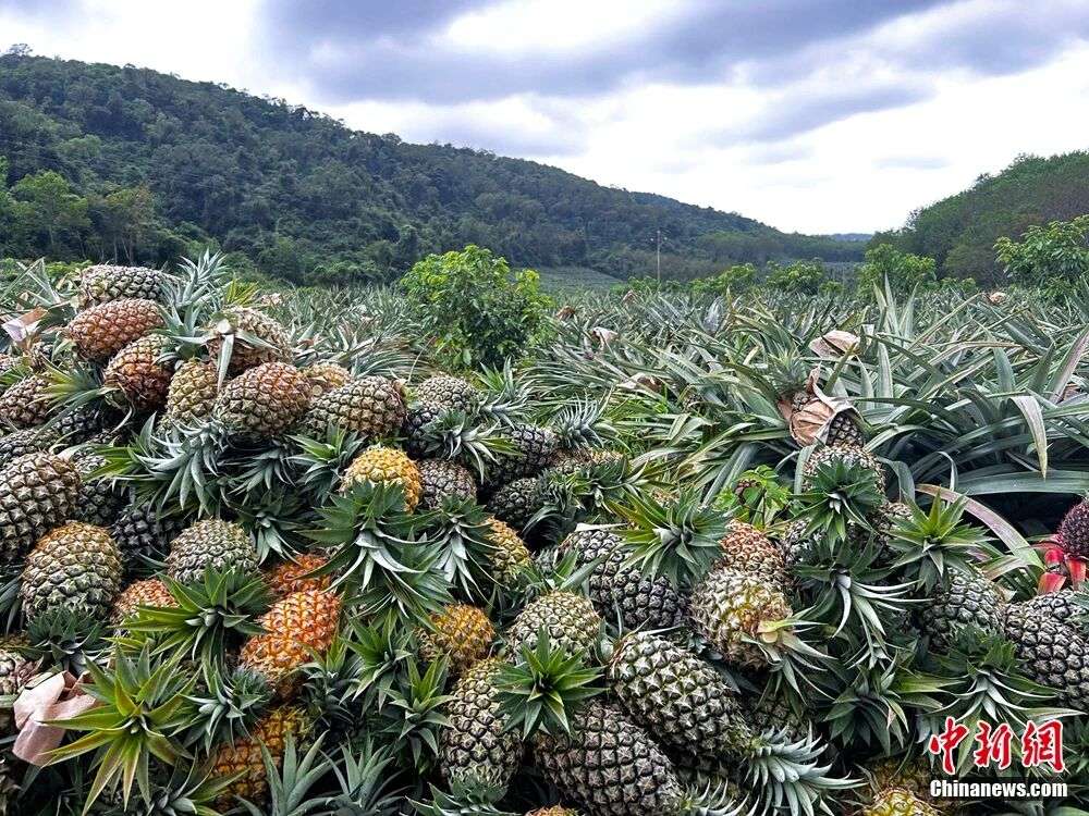 ▲青山为幕,果田为毯,成熟的凤梨簇拥而立,尽显丰收盛景。(图片来自中新网)
