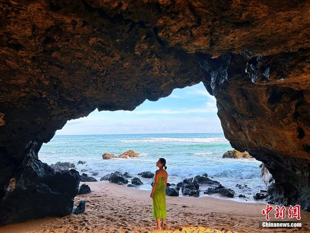 ▲万宁山钦湾燕子洞绝美海景吸引游客拍照打卡。(图片来自中新网)
