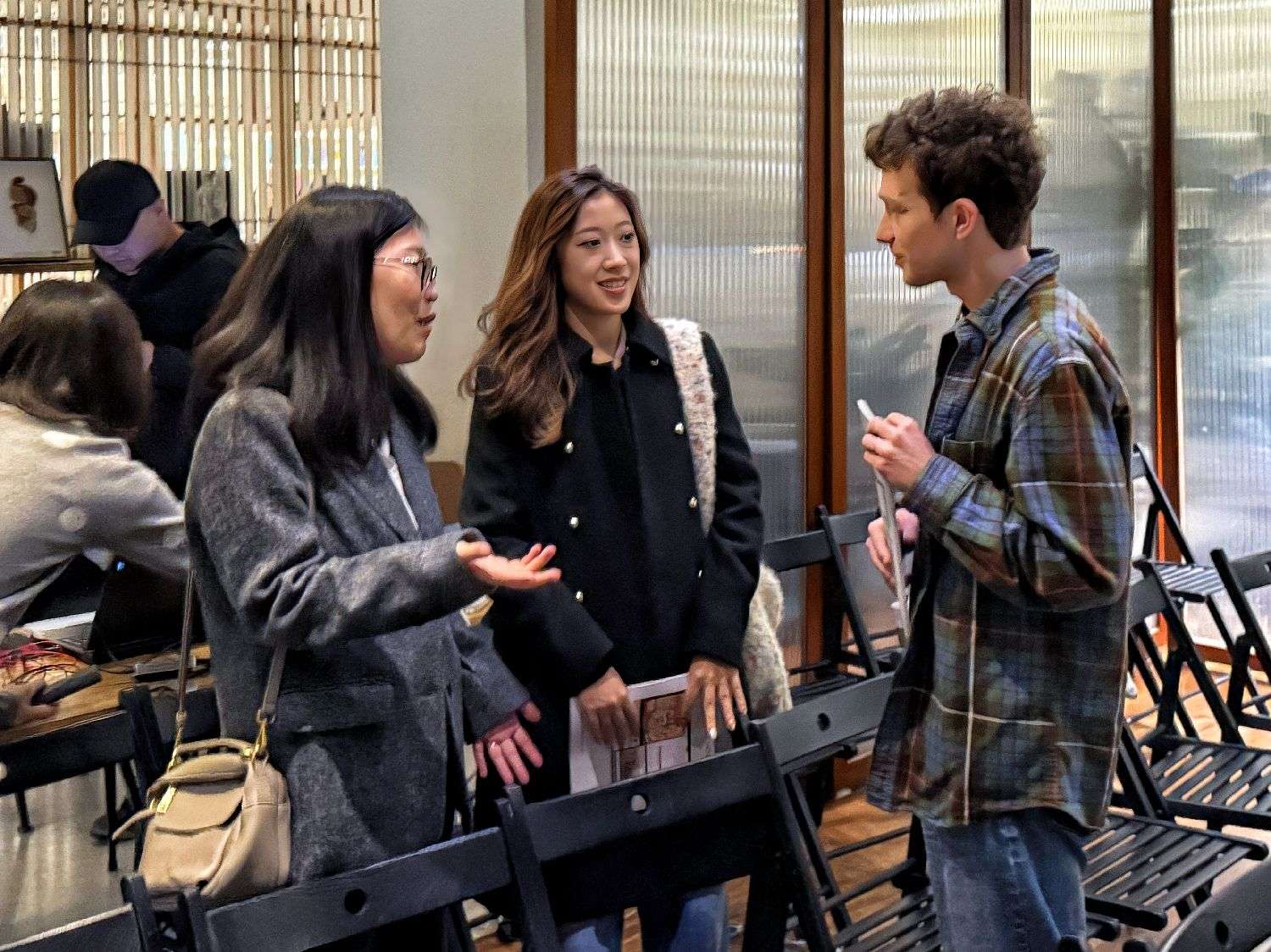 ▲3月26日,活动结束后,中外科幻爱好者们相互交流。陈辉摄