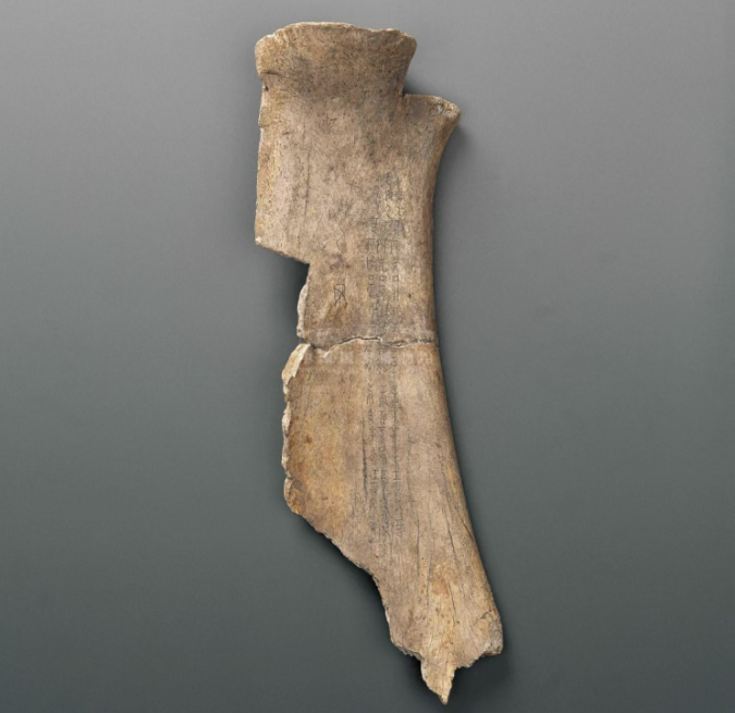 ▲商王帝乙或帝辛时期刻“干支表”牛骨。(图片来源:中国国家博物馆)