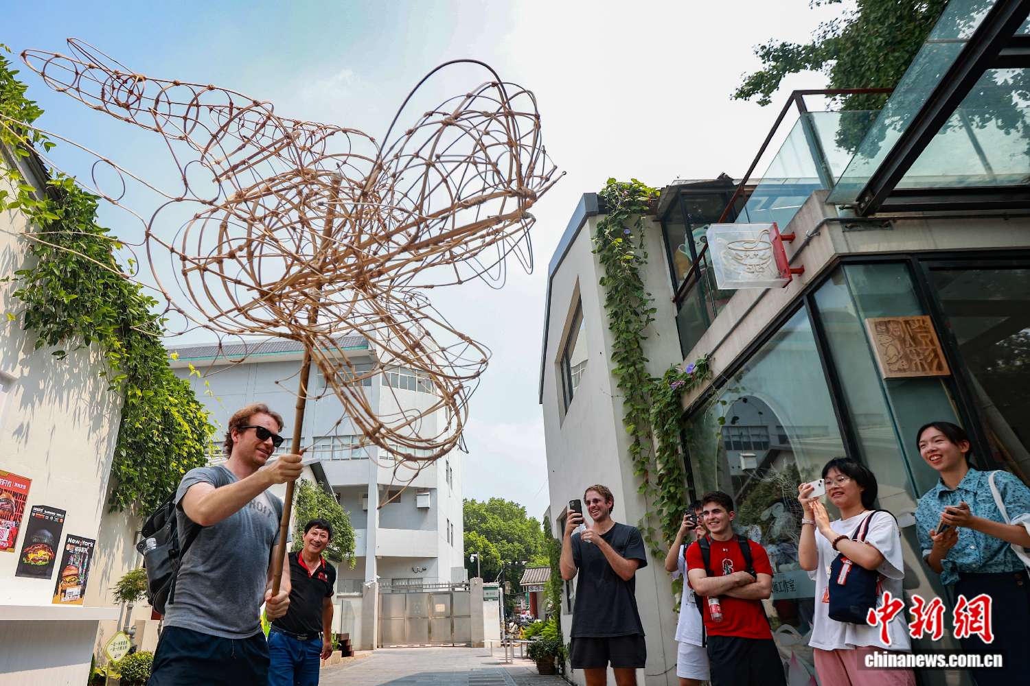 ▲2023年8月13日,中外青年在南京了解秦淮花灯的制作技艺。(图片来自中新社)