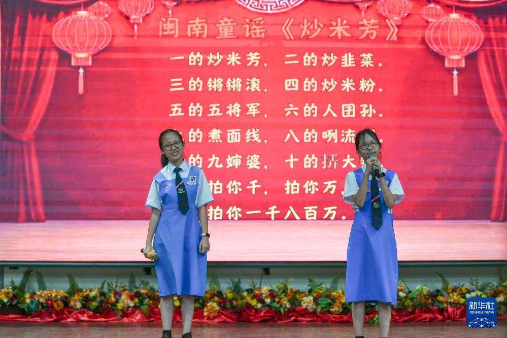 ▲3月30日,在马来西亚马六甲华文高等中学,学生表演朗诵闽南童谣。新华社记者陈泽国 摄