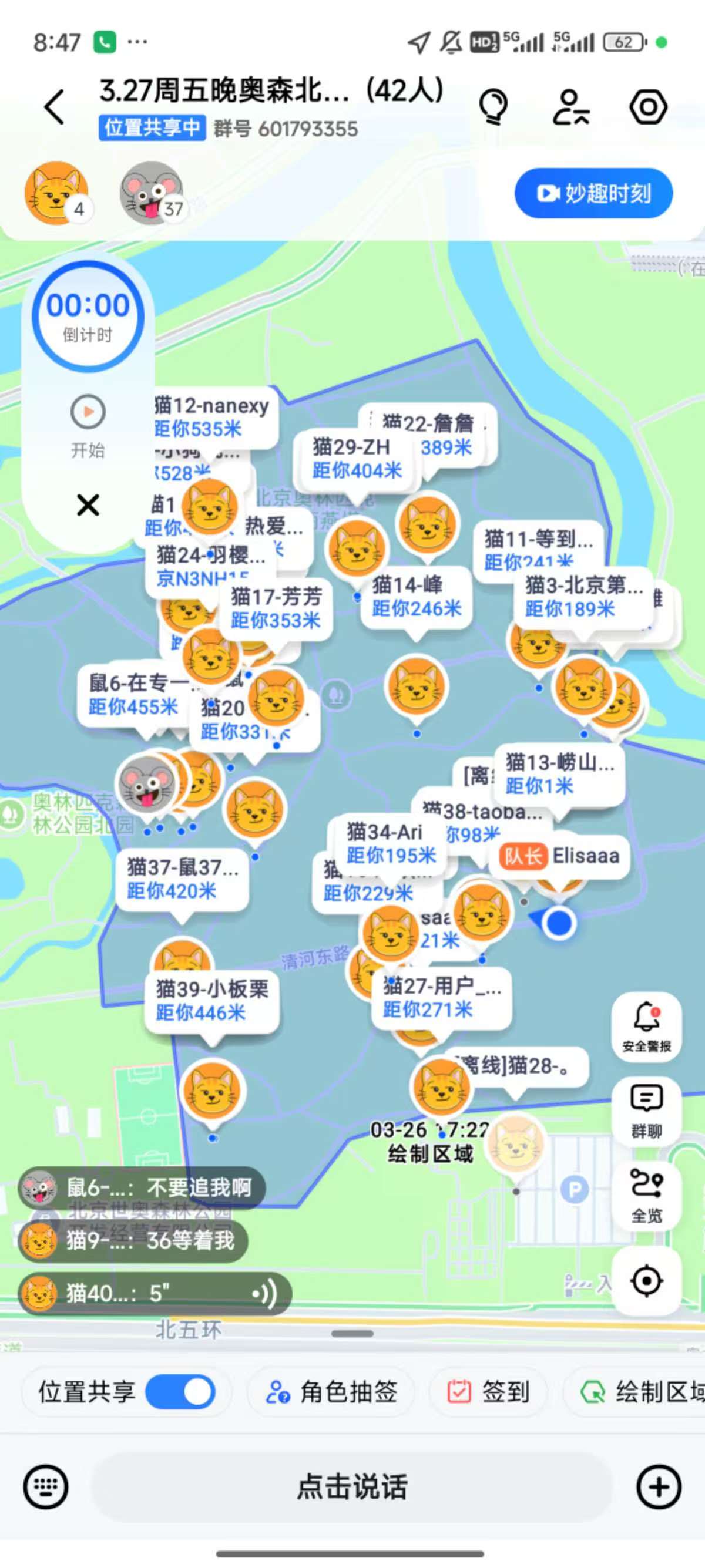 相比饭局、酒局、相亲局,这种户外游戏提供了更轻松的关系建立方式。“很多人是自己来的,但最后都会重新结伴。”据张张观察,在游戏中,两只“老鼠”一起躲藏、两只“猫”合作围堵等环节都会增加玩家的互动,有人相约下一次结伴,还有人因此促成了一桩缘分。