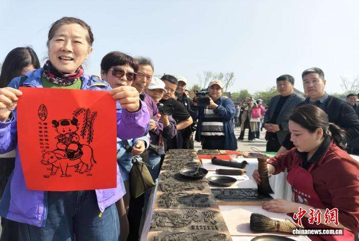 ▲图为市民展示朱仙镇木版年画。(图片来自中新网)