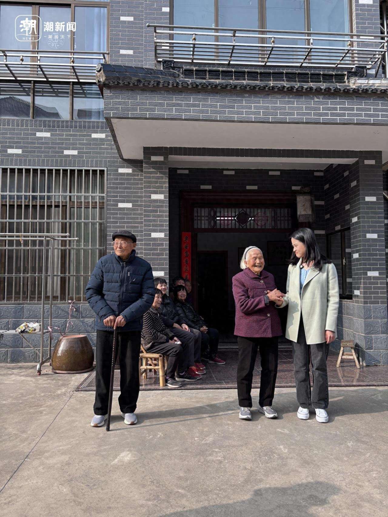 ▲朱溪瑞回到平湖市广陈镇民主村看望爷爷、奶奶。记者陈黎明摄