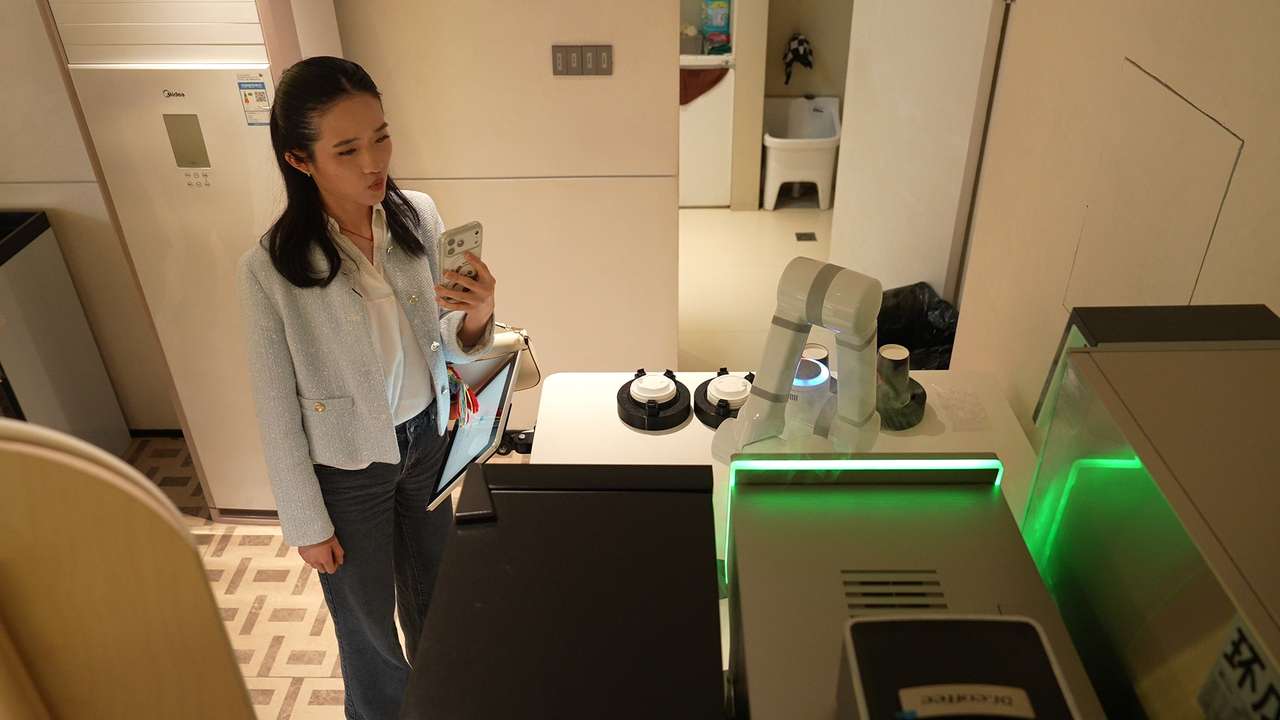 在杭州,溪瑞走进一间特殊的厨房。只需提供食材,洗菜、切菜、炒菜全交给一位特别的“大厨”——炒菜机器人。只见机器人拿着炒勺,在锅里灵活翻动,不多会,一盘香喷喷的炒菜便出锅了。饭后来一杯咖啡,同样由机器人现磨。“这里几乎没有员工,只有机器人在制作餐饮,全都是自动化的。”溪瑞忙拿出手机录制。