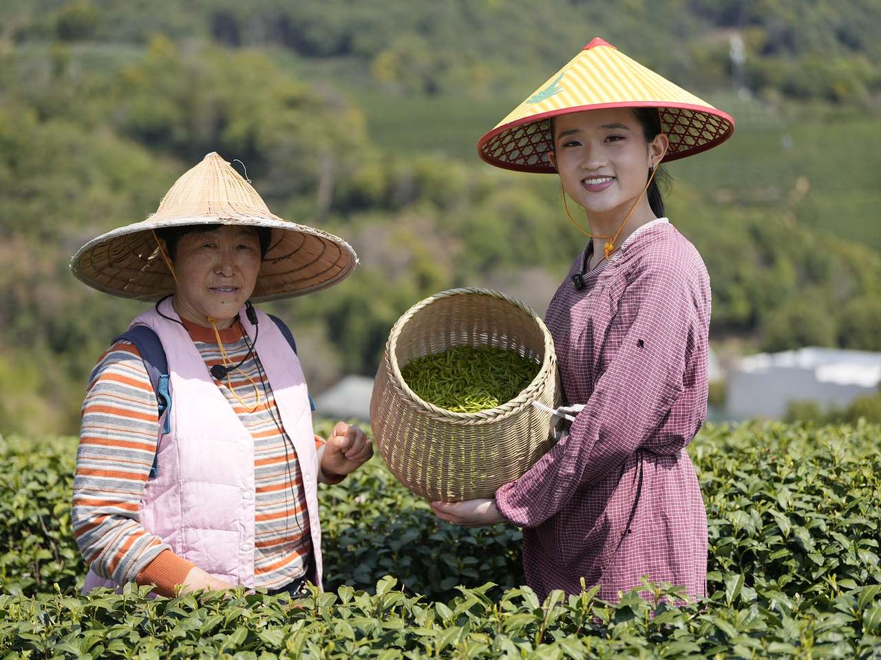 ▲朱溪瑞在杭州体验采茶。浙江省国际传播中心供图