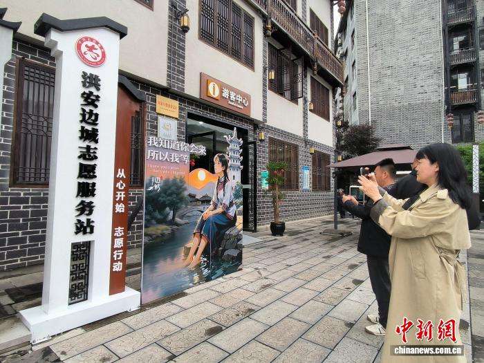 “我知道你会来,所以我等。”在洪安边城志愿服务站的门口,一幅少女河边洗脚的漫画上,这句出自《边城》的话引得游客频频拍照打卡。
