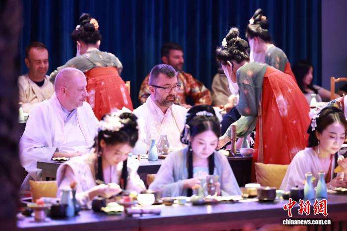 ▲蜀宴赋位于上海的华东首店内,外国食客络绎不绝,纷纷来体验古礼国风宴席。(蜀宴赋供图)