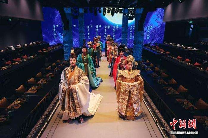 ▲蜀宴赋位于上海的华东首店内,压轴出场的华服走秀《盛世华章》,让中外宾客一眼读懂华夏衣冠密码。(蜀宴赋供图)