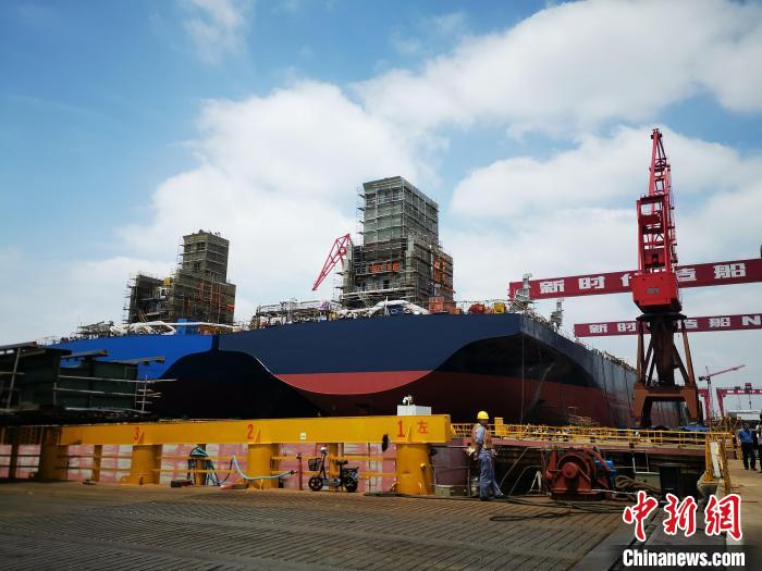 ▲5月19日,江苏靖江,江苏新时代造船有限公司内某处施工现场。(图片来自中新社)