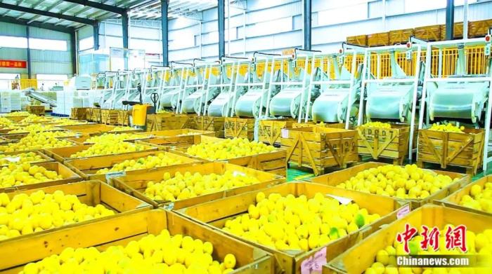 ▲柠檬鲜果储存车间。(图片来自中新网)