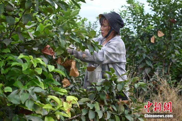 ▲果农正在给柠檬套袋。(图片来自中新网)