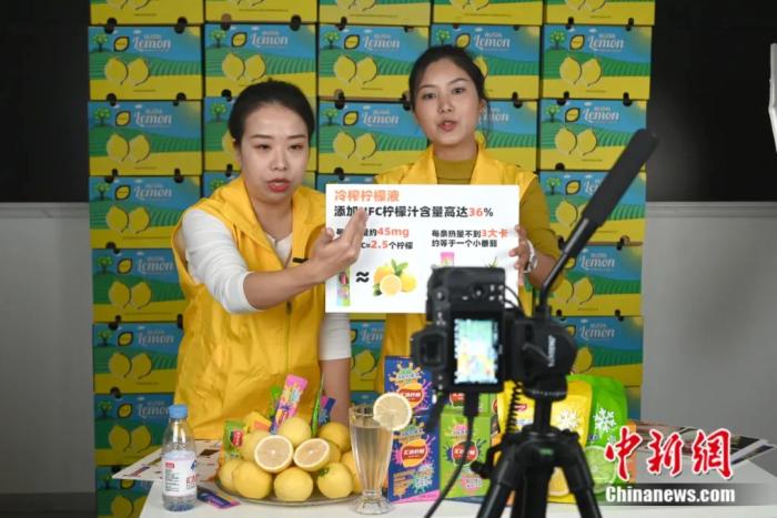 ▲工作人员通过直播销售柠檬。(图片来自中新网)