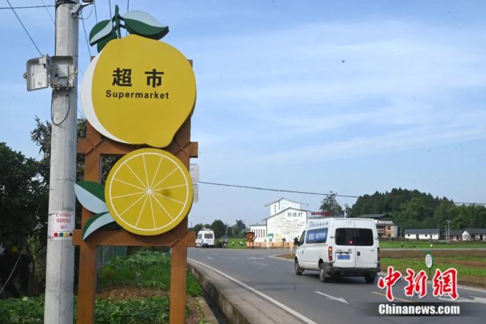 ▲潼南乡镇的一处柠檬标识。(图片来自中新网)