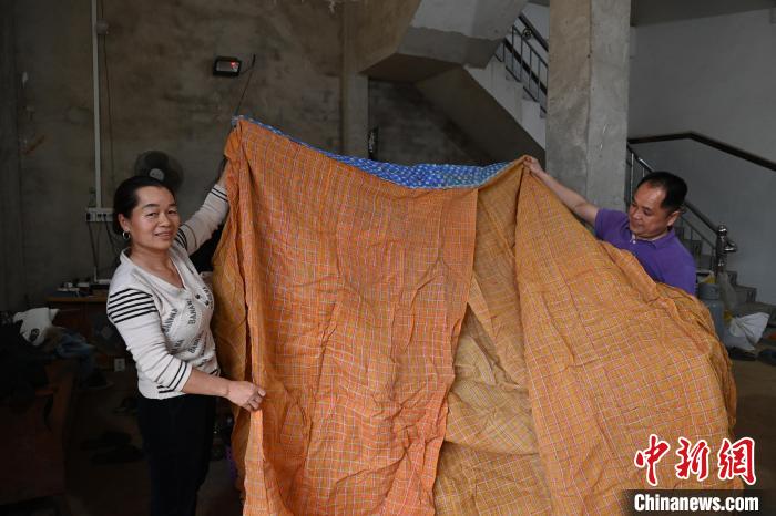 ▲黄小英和丈夫在展示嫁妆。(图片来自中新网)
