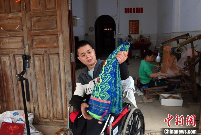 “这是我妈妈纯手工制作的壮锦。”黄华刚坐在轮椅上,自信地介绍着壮锦,通过直播,他已帮助那莫屯织娘卖了200多条围巾。