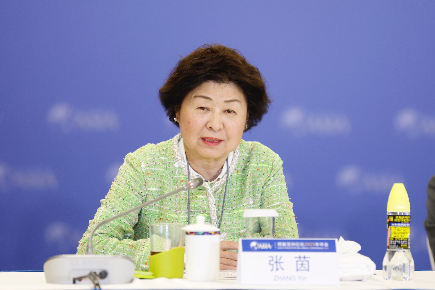 ▲玖龙纸业(控股)有限公司董事长、中国侨商联合会荣誉会长张茵发言。(图片来自中新社)