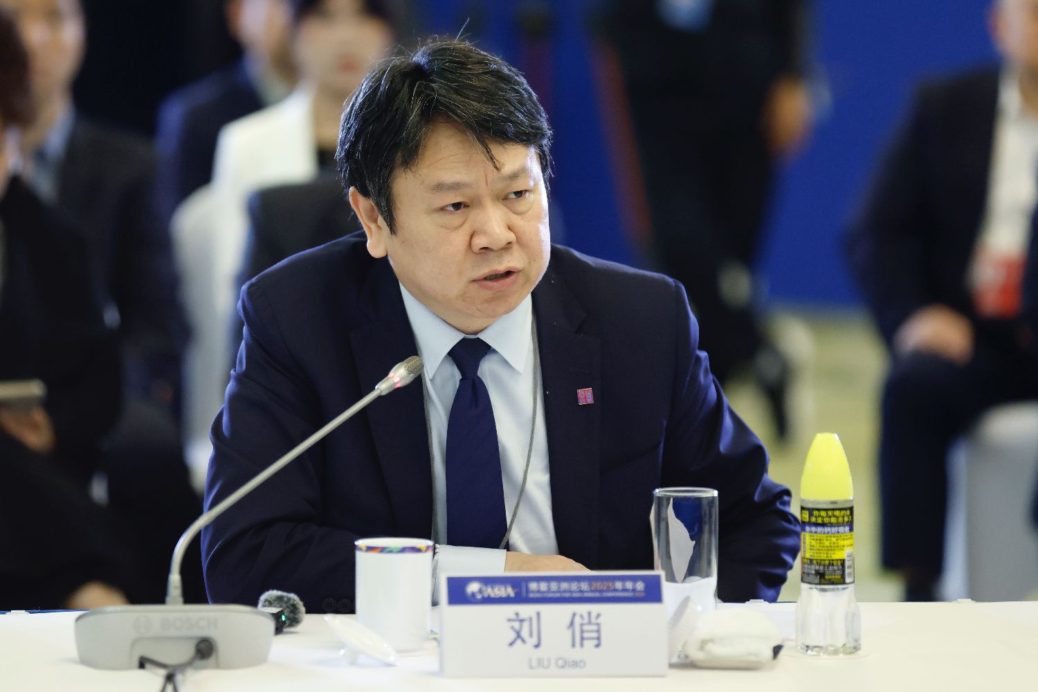 ▲北京大学光华管理学院院长刘俏发言。(图片来自中新社)