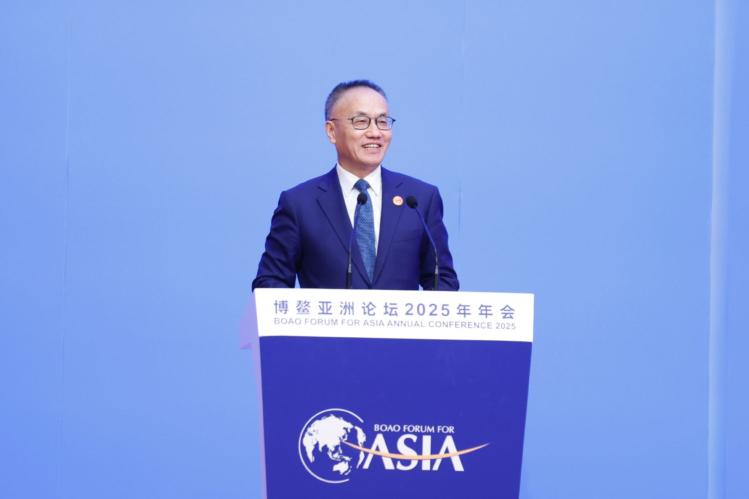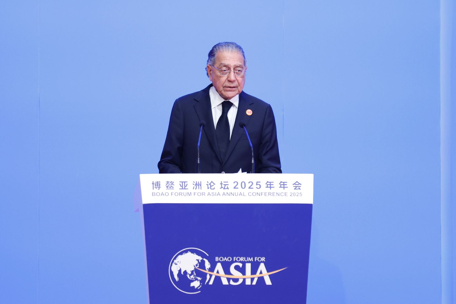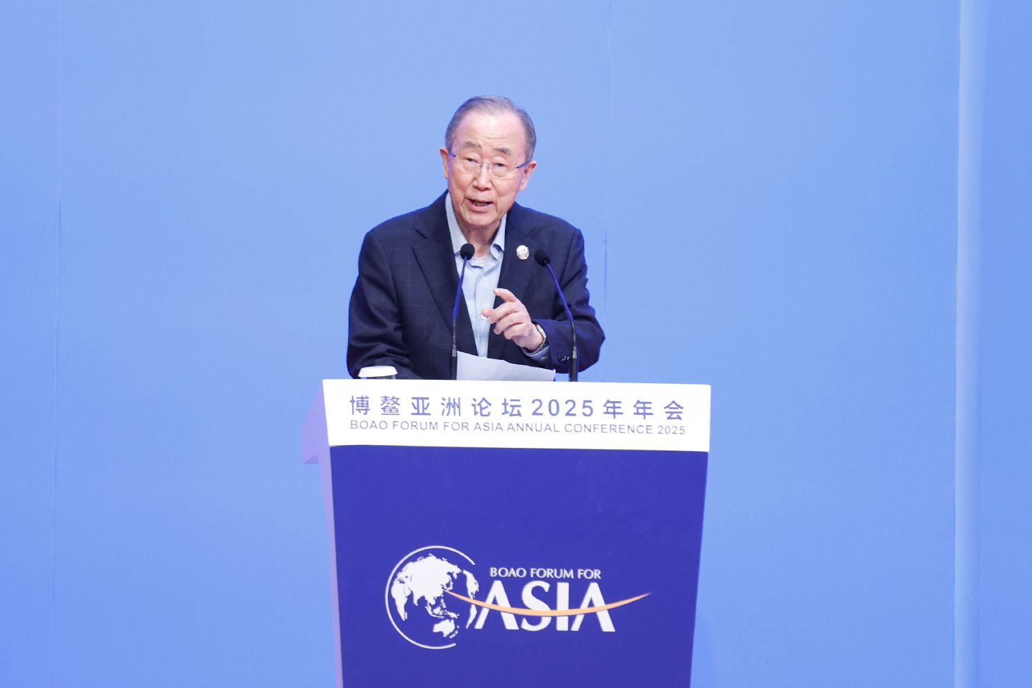 ▲博鳌亚洲论坛理事长、联合国第八任秘书长潘基文作主旨演讲。(图片来自中新社)