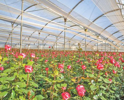 ▲绿叶农场玫瑰种植园的大棚内,玫瑰竞相绽放。(图片来自《人民日报》)