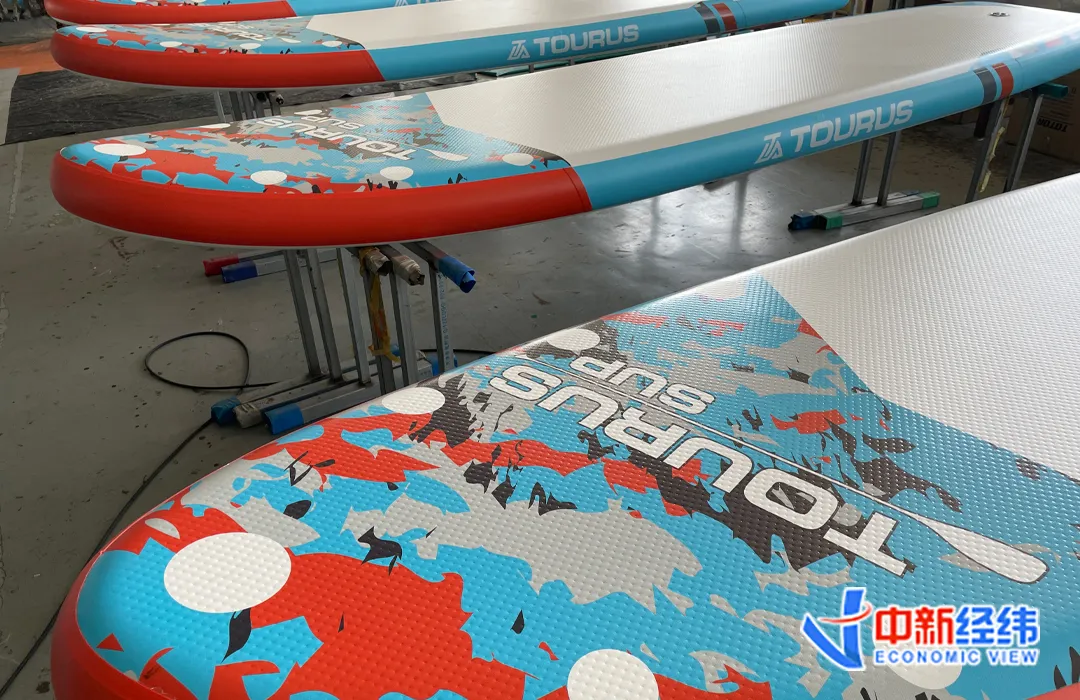 ▲途诺户外生产的桨板。(图片来自中新经纬)