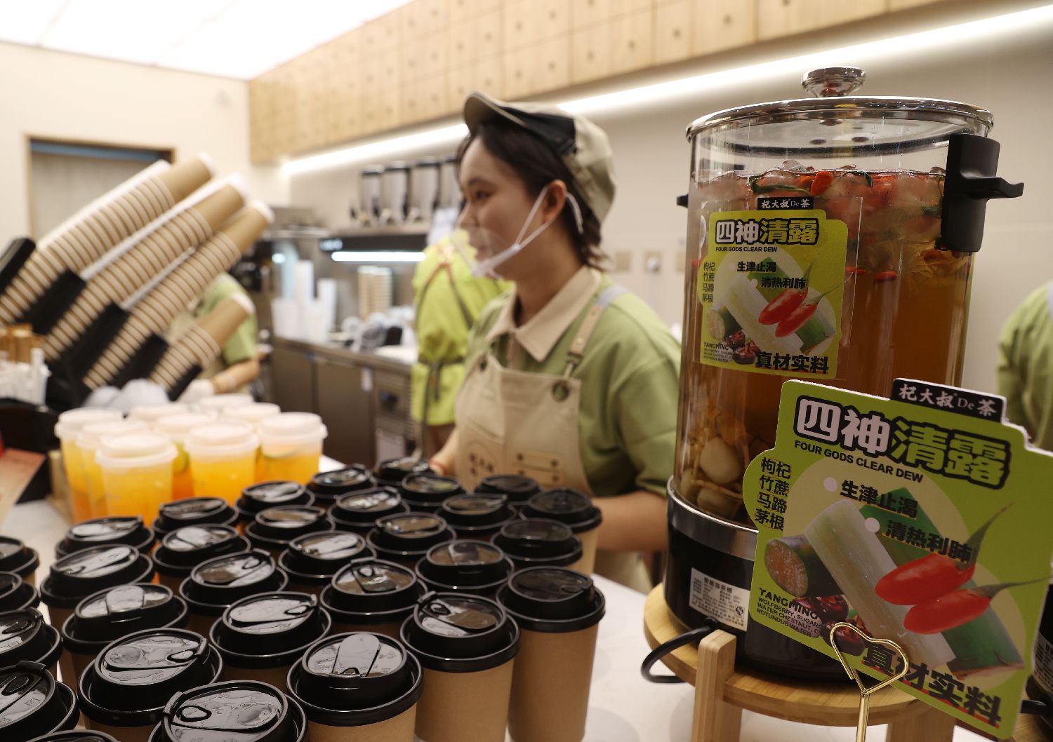 茶百道相关负责人向记者透露,该品牌二季度单店日均营业额达一年来的季度最高水平,环比提升约15%。爆款单品“荔枝冰奶”在上架44天内销量突破1200万杯,全部由门店现剥鲜果制作。
