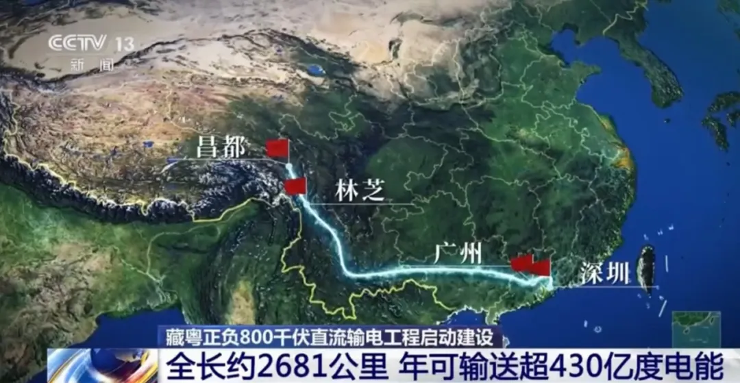 藏粤直流工程的建设,有望改变这一局面。这条能源走廊以西藏为起点,途经云南、广西,最终抵达广东,在西藏昌都、林芝和广东广州、深圳建设四座换流站。
