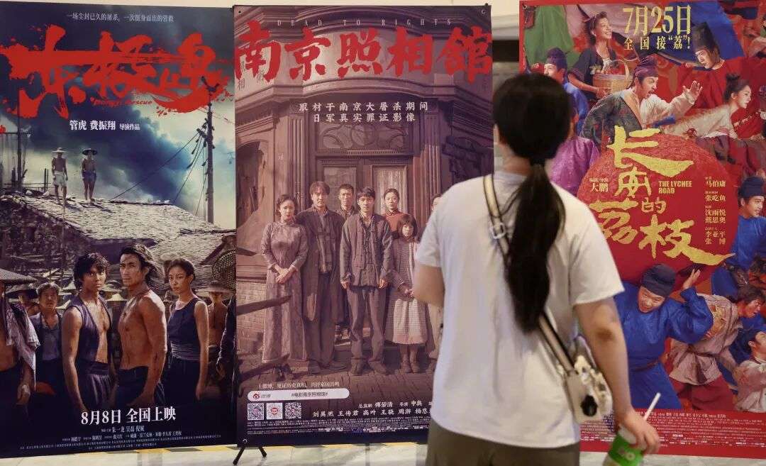 ▲(资料图)市民在影院浏览电影海报。(图片来自中新社)