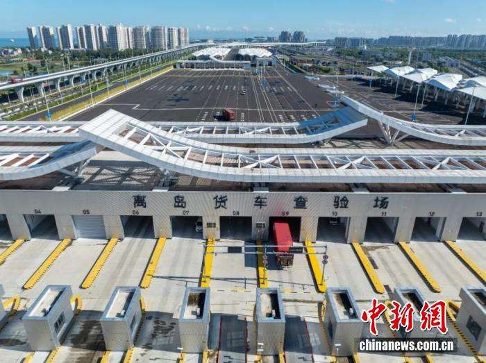 ▲2025年9月15日,海南海口,出岛货车通过海口新海港和南港“二线口岸”(货运)集中查验场。中新社记者骆云飞摄