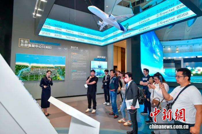 ▲2024年1月10日,泰国企业考察团到访海南自贸港重点园区一展示中心参观。中新社记者骆云飞摄