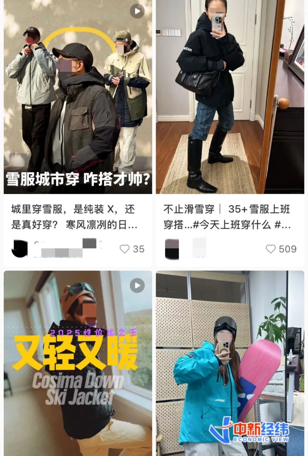 ▲消费者在社交平台晒出穿滑雪服通勤。(截图自小红书)