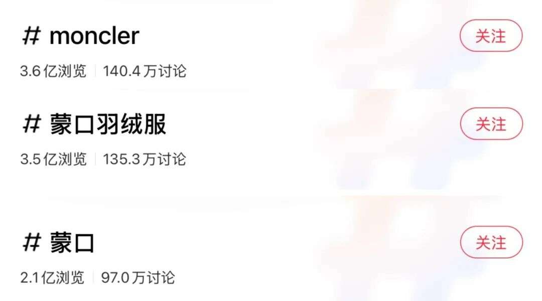 在小红书,Moncler相关词条有9.2亿次浏览,讨论量超370万。但是,按点赞来看,热度前十的笔记,有七篇停留在上个冬天甚至更早。