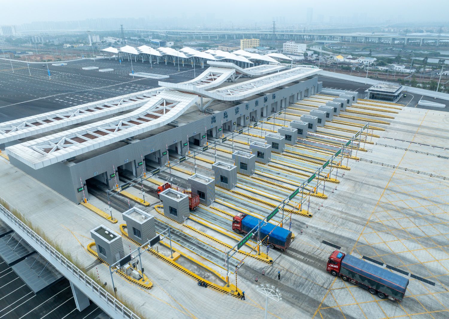 ▲12月10日,海口新海港和南港“二线口岸”(货运)集中查验场。(图片来自中新社)