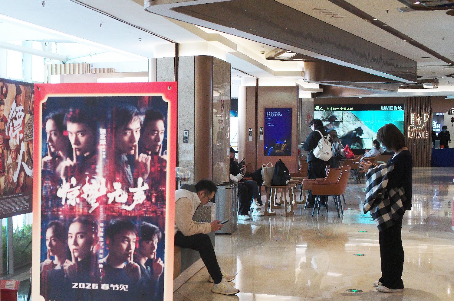 ▲2月23日,农历大年初七,市民在上海UME新天地国际影城等待看电影。(图片来自中新社)