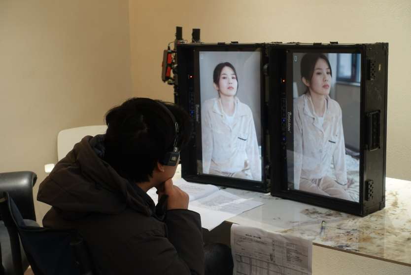 ▲2024年3月14日,浙江横店,一位影视工作者使用竖屏监视器导戏。(图片来自中新社)