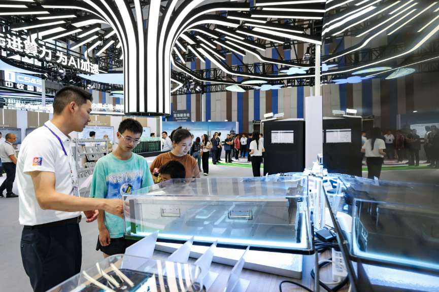 ▲2025年8月28日,在中国国际大数据产业博览会上,华为800IA2推理服务器吸引参观者。(图片来自中新社)