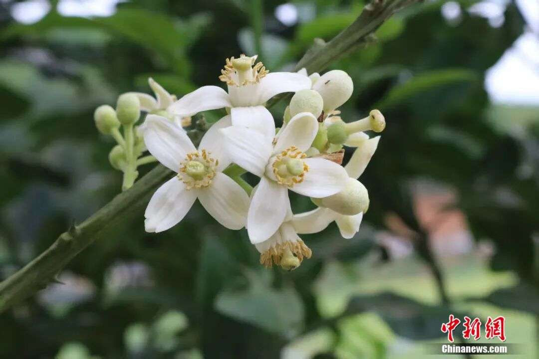 ▲图为化橘红果花朵。(图片来自化州市化橘红专班供中新网)