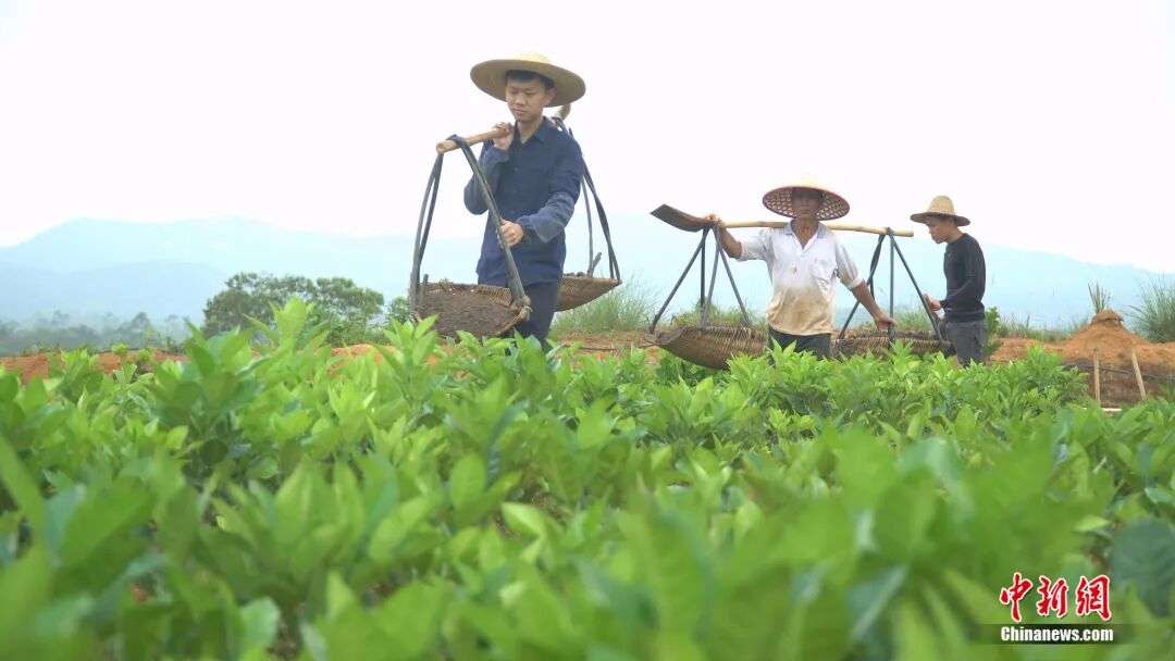 ▲图为村民为化橘红果苗施肥。(图片来自化州市化橘红专班供中新网)