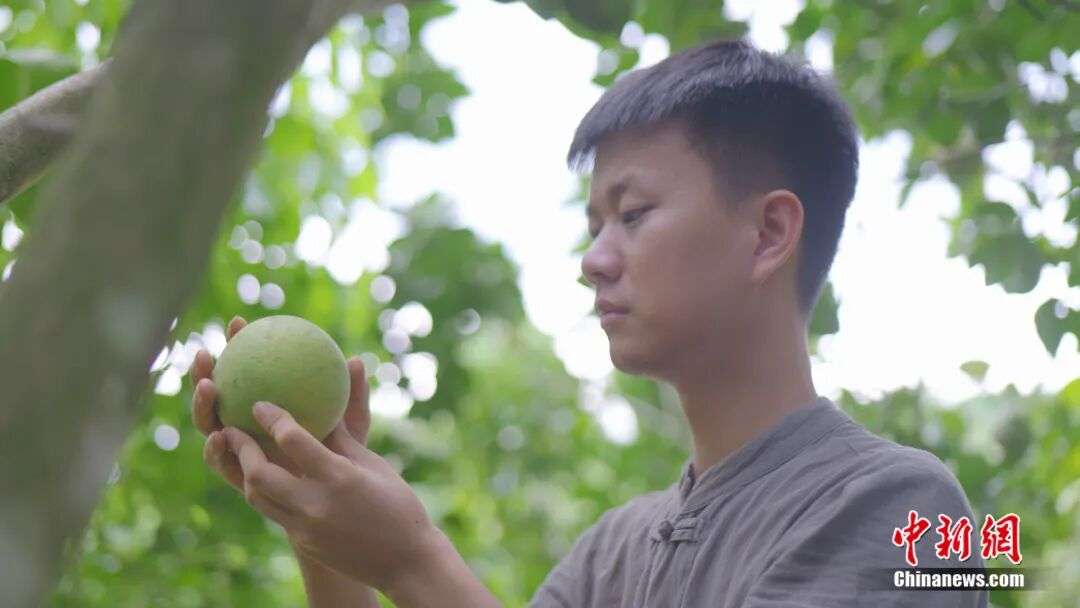 ▲图为全国人大代表、广东茂名化州市培林橘红种植专业合作社社长廖志略采摘化橘红果。(图片来自化州市化橘红专班供中新网)