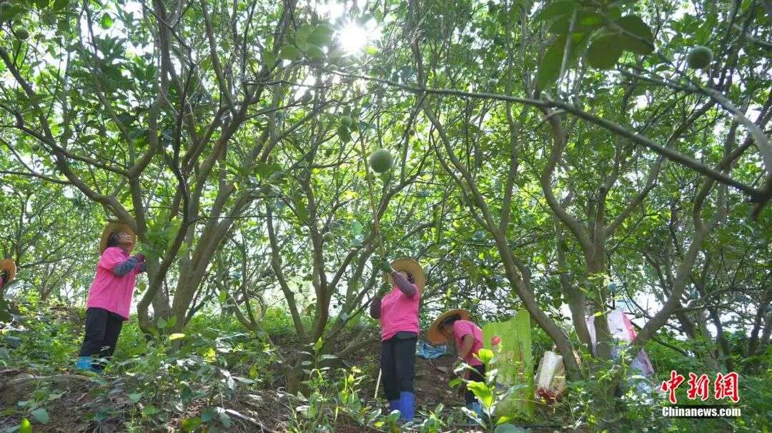 ▲图为村民采摘化橘红果。(图片来自化州市化橘红专班供中新网)