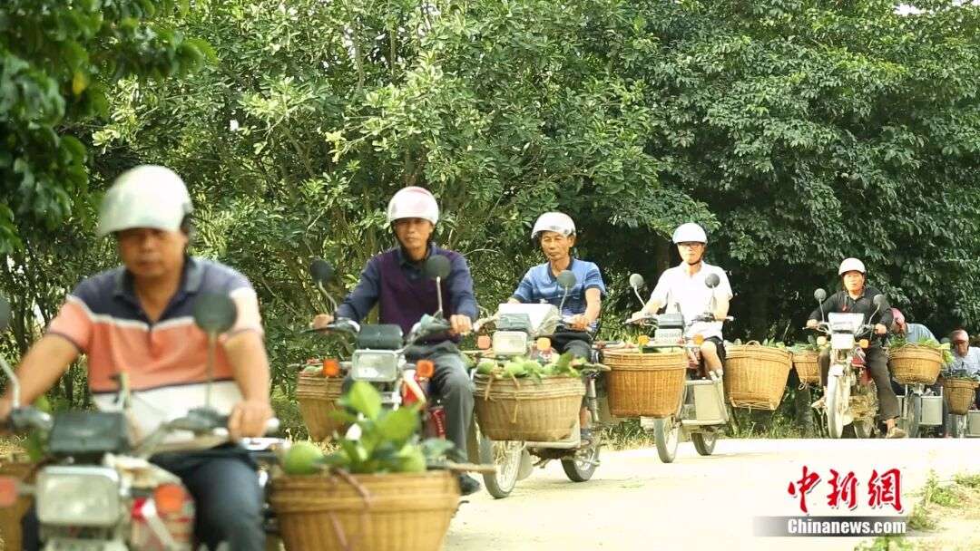 ▲图为村民运输化橘红果。(图片来自化州市化橘红专班供中新网)