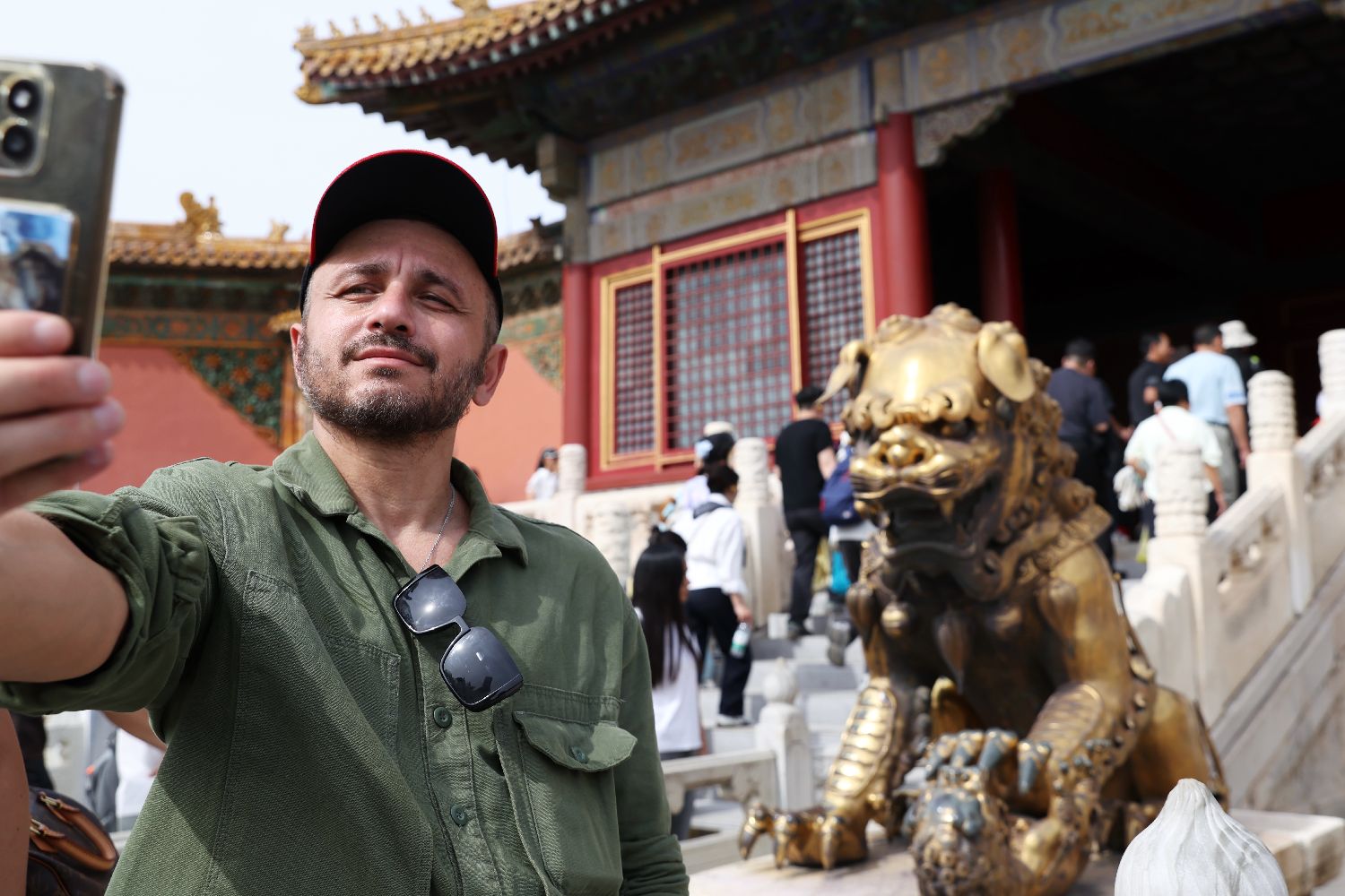 ▲2025年10月1日,外国游客在故宫博物院乾清门外自拍。当日是国庆假期第一天,北京故宫博物院吸引游客参观。(图片来自中新社)