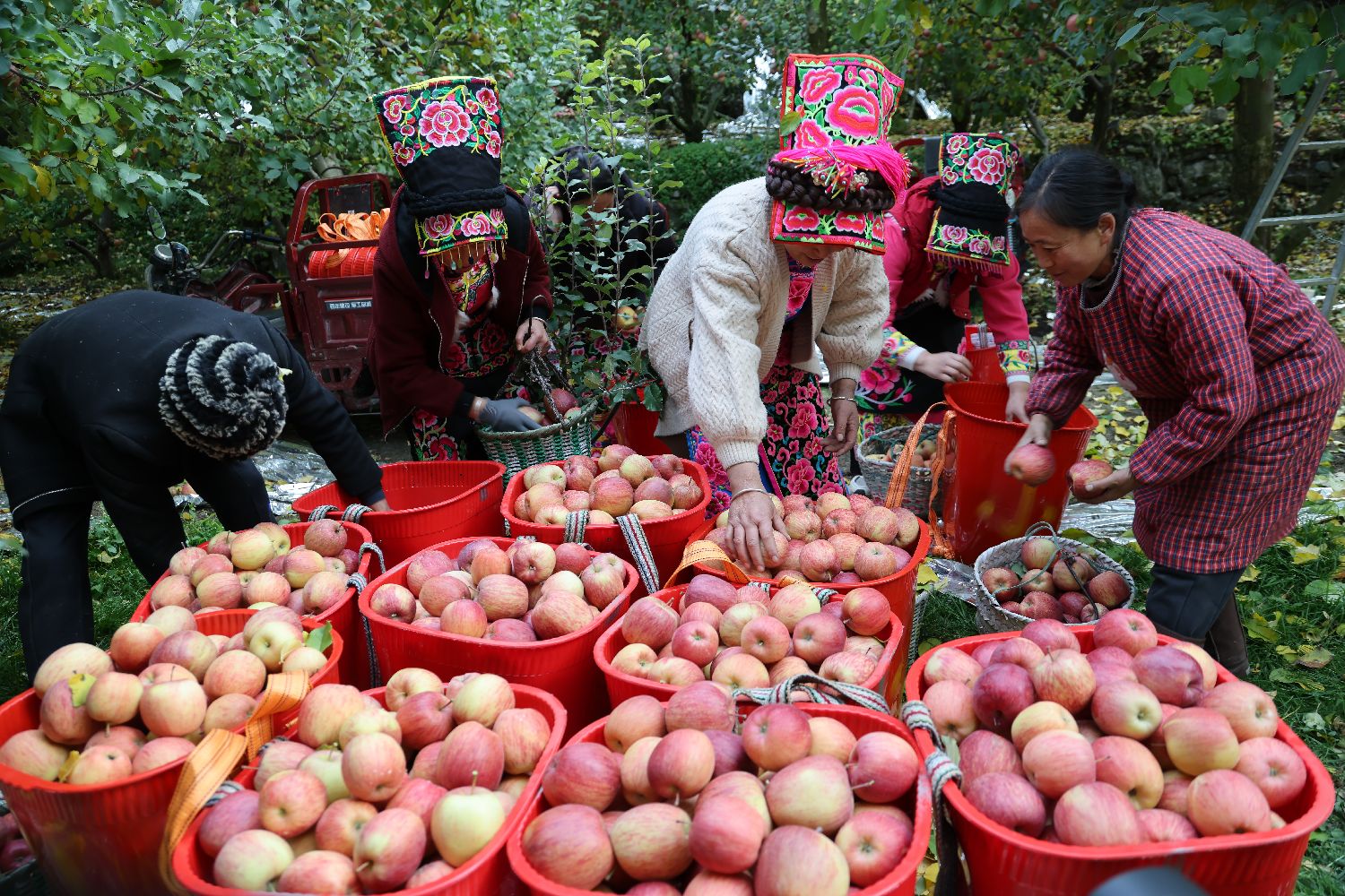 ▲2025年11月20日,四川省茂县南新镇安乡村羌族村民收获成熟的苹果。(图片来自中新社)