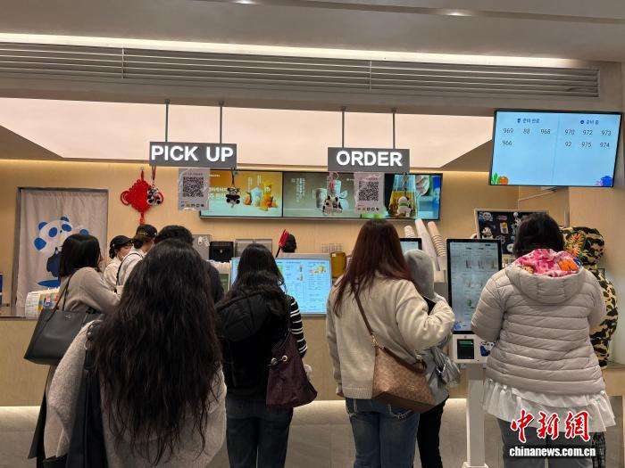 ▲图为3月14日,消费者在茶百道首尔弘大店内。(图片来自中新社)