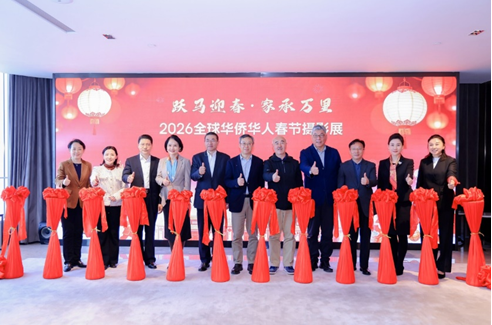 ▲嘉宾们为2026全球华侨华人春节摄影展揭幕。