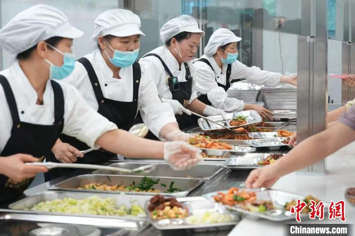 ▲5月1日,衢州政府食堂工作人员配餐现场。(图片来自中新网)