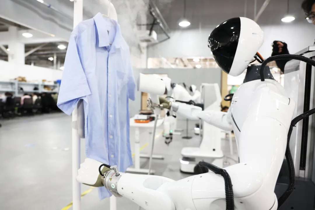 ▲2025年3月20日,在上海智元机器人张江数据采集中心内,人形机器人正在熨烫衣服。中新社记者 汤彦俊 摄