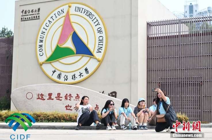 ▲2024年8月17日,参加2024年台湾大学生网信企业实习活动的同学和中国传媒大学的学生一起游览校园。(图片来自中新社)