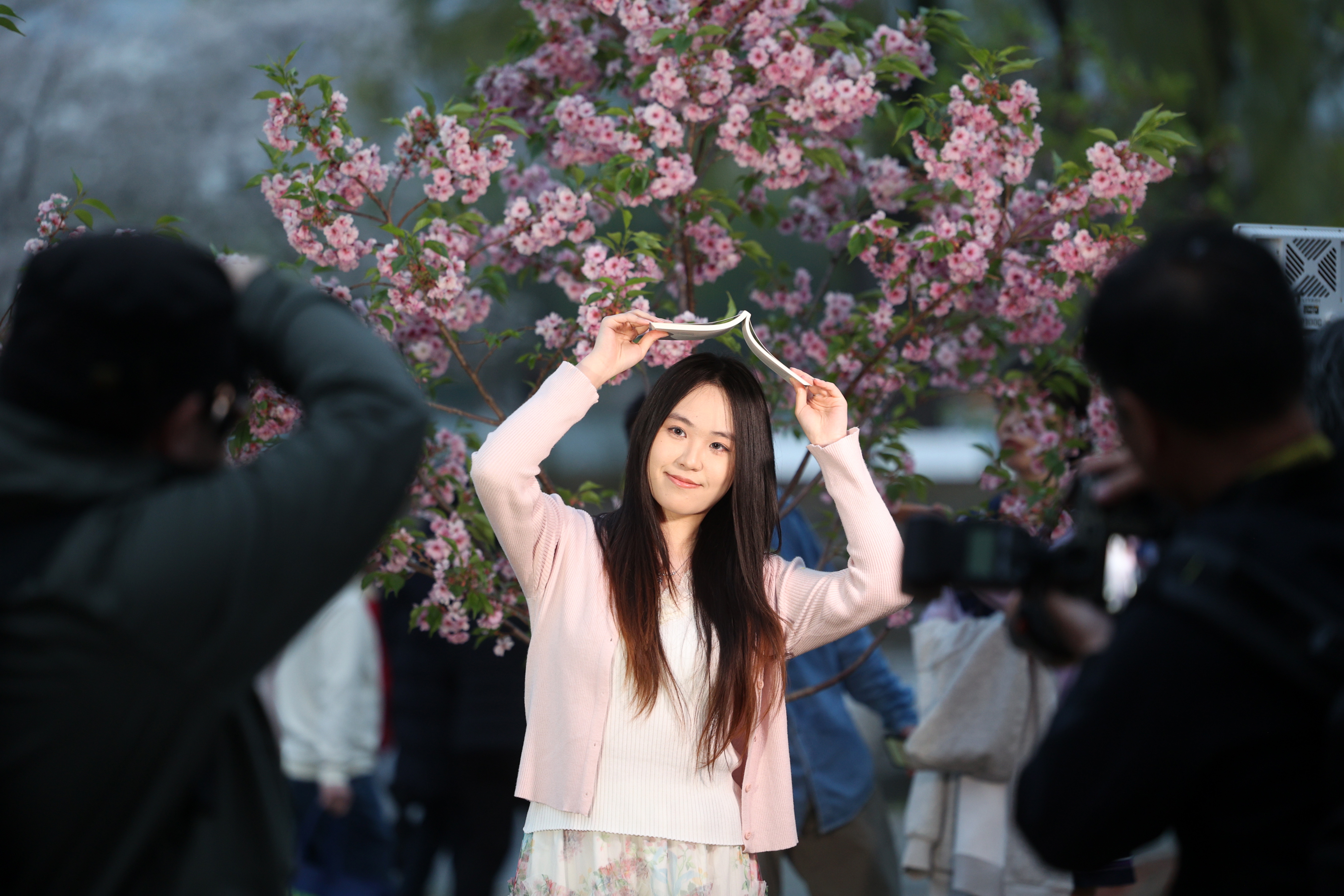 中国赏樱文化源远流长,唐代诗人白居易曾写下“小园新种红樱树,闲绕花行便当游”的佳句,道尽春日赏樱的闲适雅趣。千年雅趣延续至今——近日,北京玉渊潭公园樱花进入最佳观赏期,园内国产自育新品种尤为引人注目,其中首度亮相的“香妃”樱花香清甜,打破了传统樱花无香的印象。花海之中游人如织,本周末单日预计超15万人次共赴这场春日之约。 图为2026年3月29日,游客在玉渊潭樱花树前留影。李国庆摄